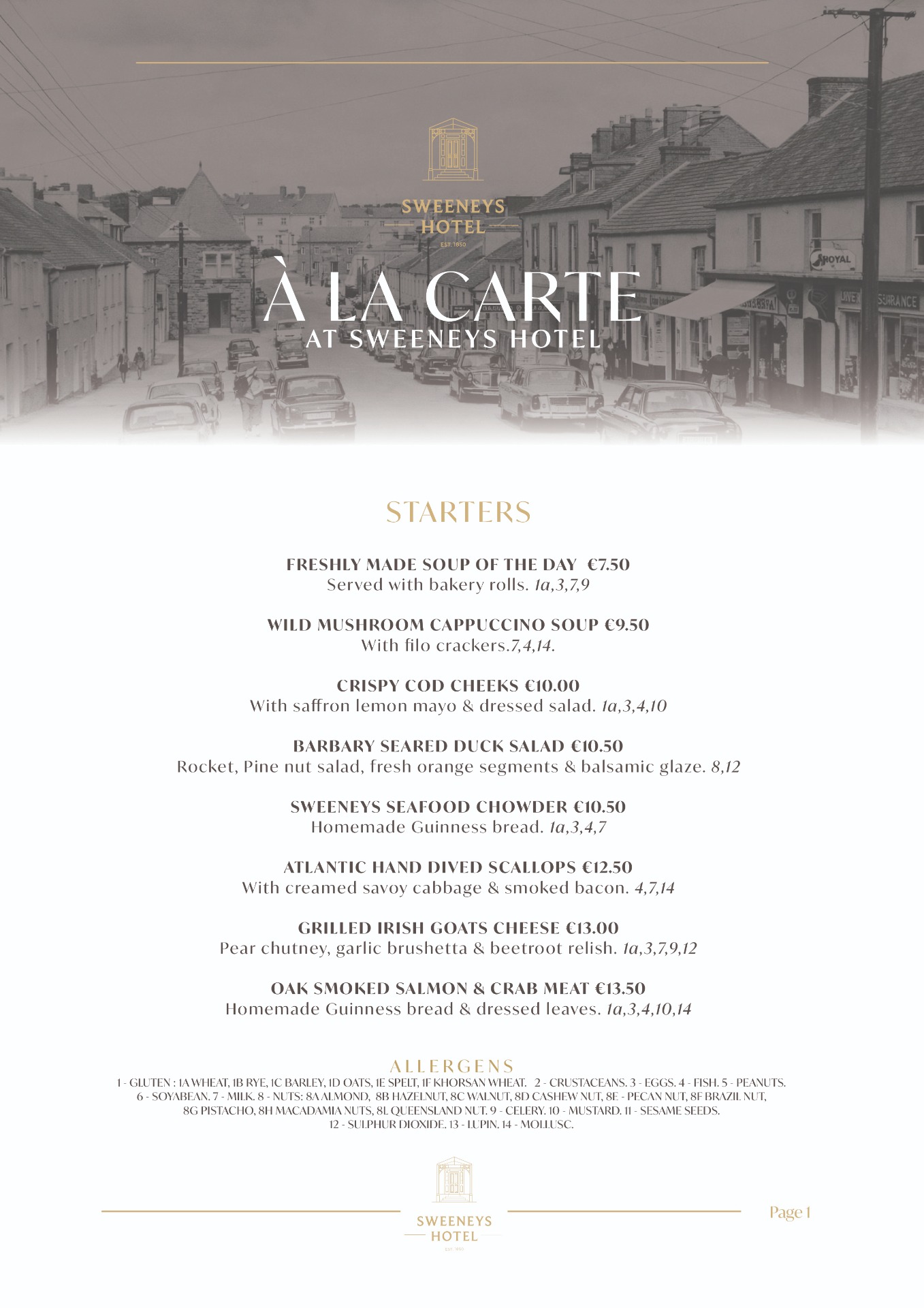 Our A la Carte Menu showcases the best of modern Irish cooking, with carefully selected local produce & elegant plates. Available daily in Glas Restaurant from 5.